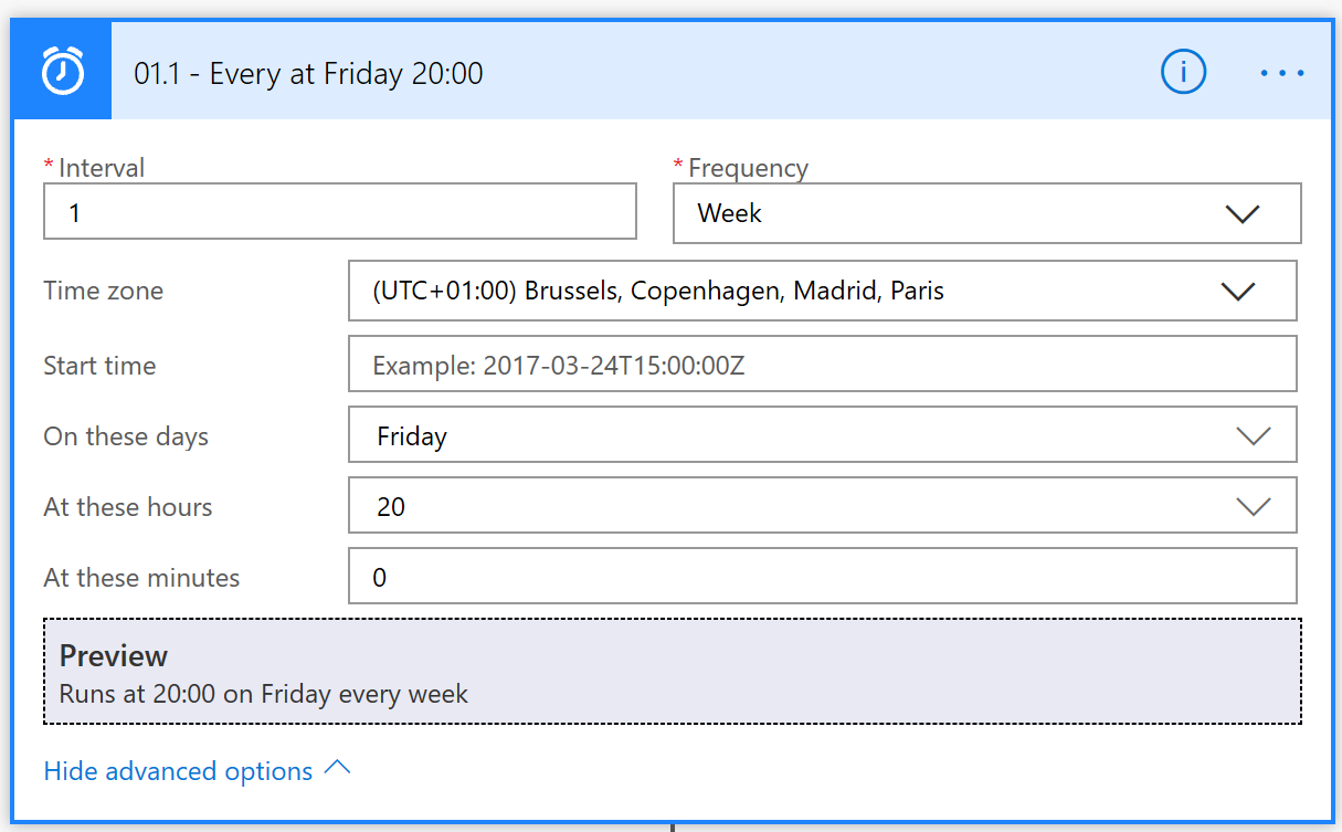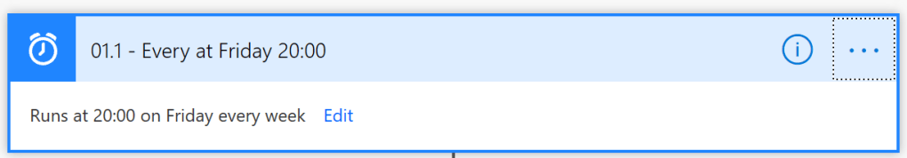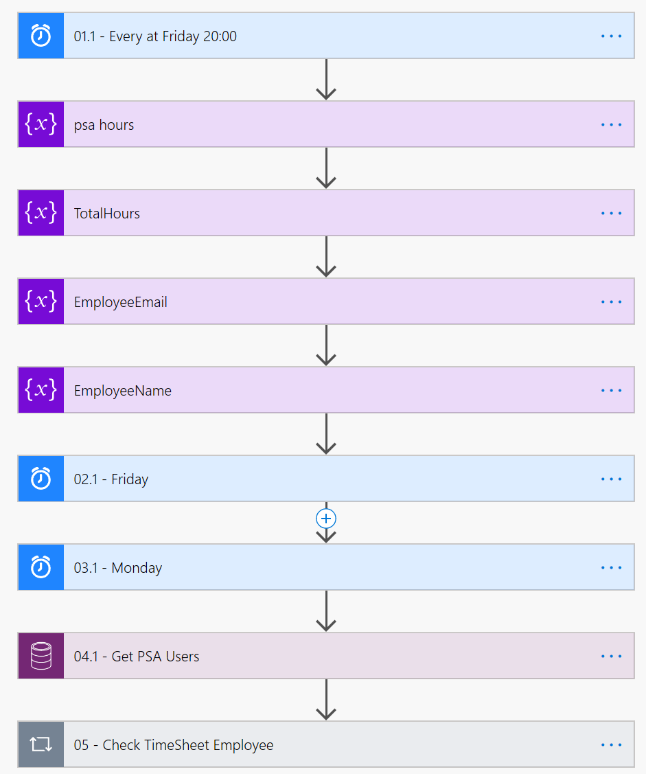 Losing a lot of time by checking everyone’s timesheet if the work week has been completely registered in the PSA timesheet portal. In Belgium, most of the employees have 40 hours working week. In this MS Flow, a check will be performed every Friday evening around 8 PM.