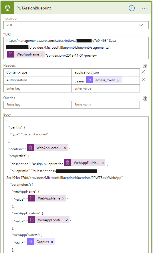 In the last months, I have worked on a proof of concept, using “Low Coding to assign Blueprints definitions in Azure. This includes a PowerApps App and an Automation flow that’s calling the Azure Blueprint REST API. Within Power Automate, calling REST API’s is mostly done by using the HTTP connector.