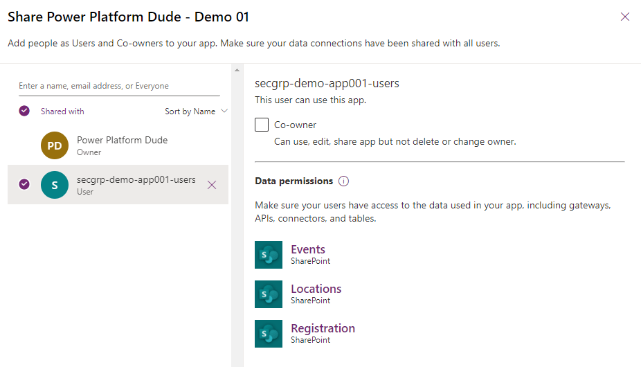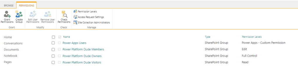 SharePoint sites have standard permissions groups (Members, Owners, Visitors) and levels (Full control, Design, Edit, Contribute, Read). With those, you can limit access to specific users or security groups. Let’s closely look at how we can use those to secure the SharePoint lists used in a Canvas App.