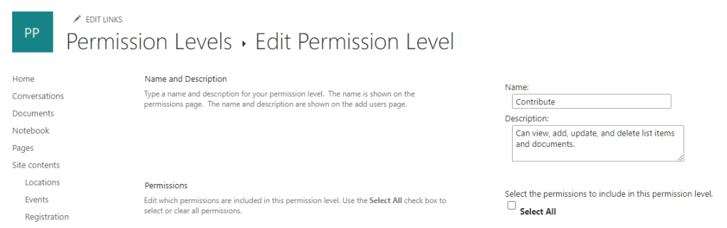 Click “Contribute”, and scroll down to the end of the page and click “Copy Permission Level.”