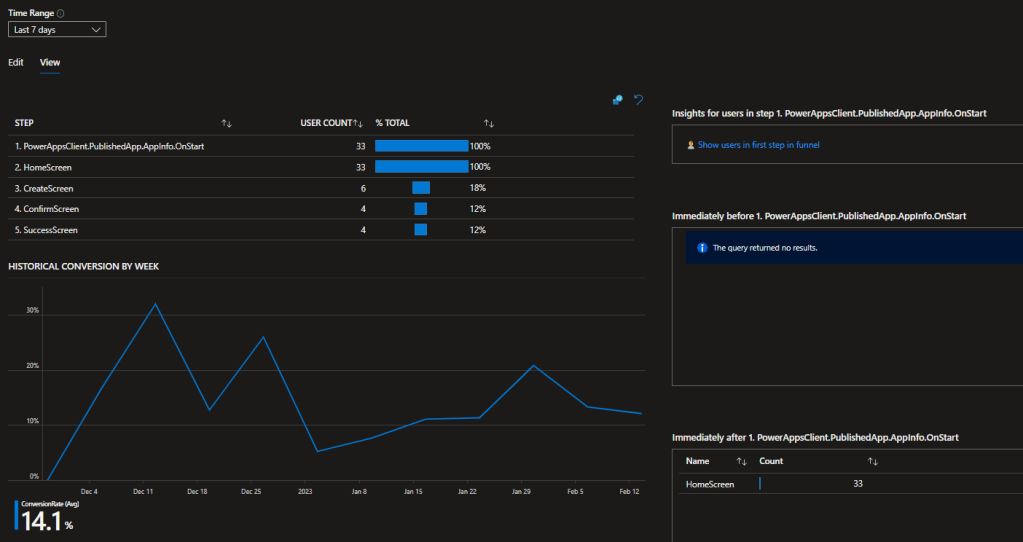 Save and publish the Canvas App. It will take a short time that the first information will be available in the Azure Application Insights resource. These are the basic steps to install and integrate Azure Application Insights with a Power Platform Canvas application.