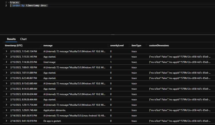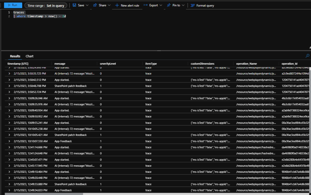 - Modify the query to filter the traces by different properties, such as severity level or custom properties.